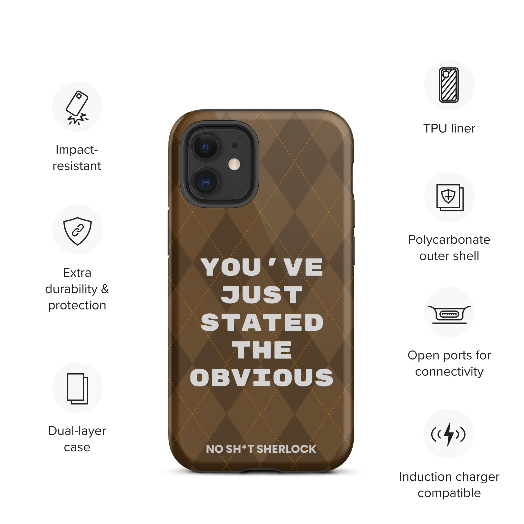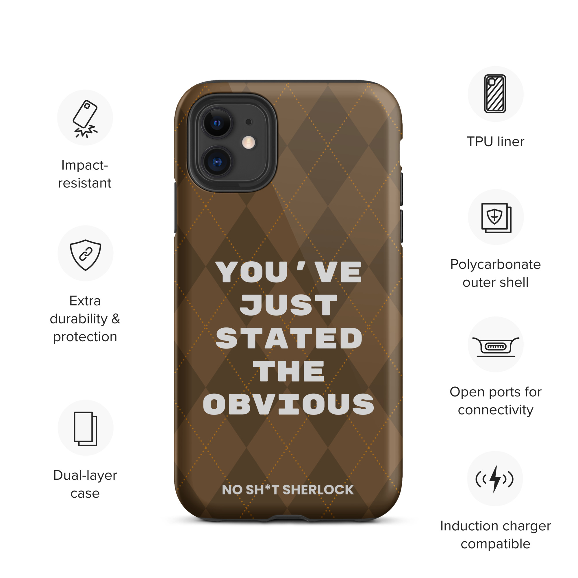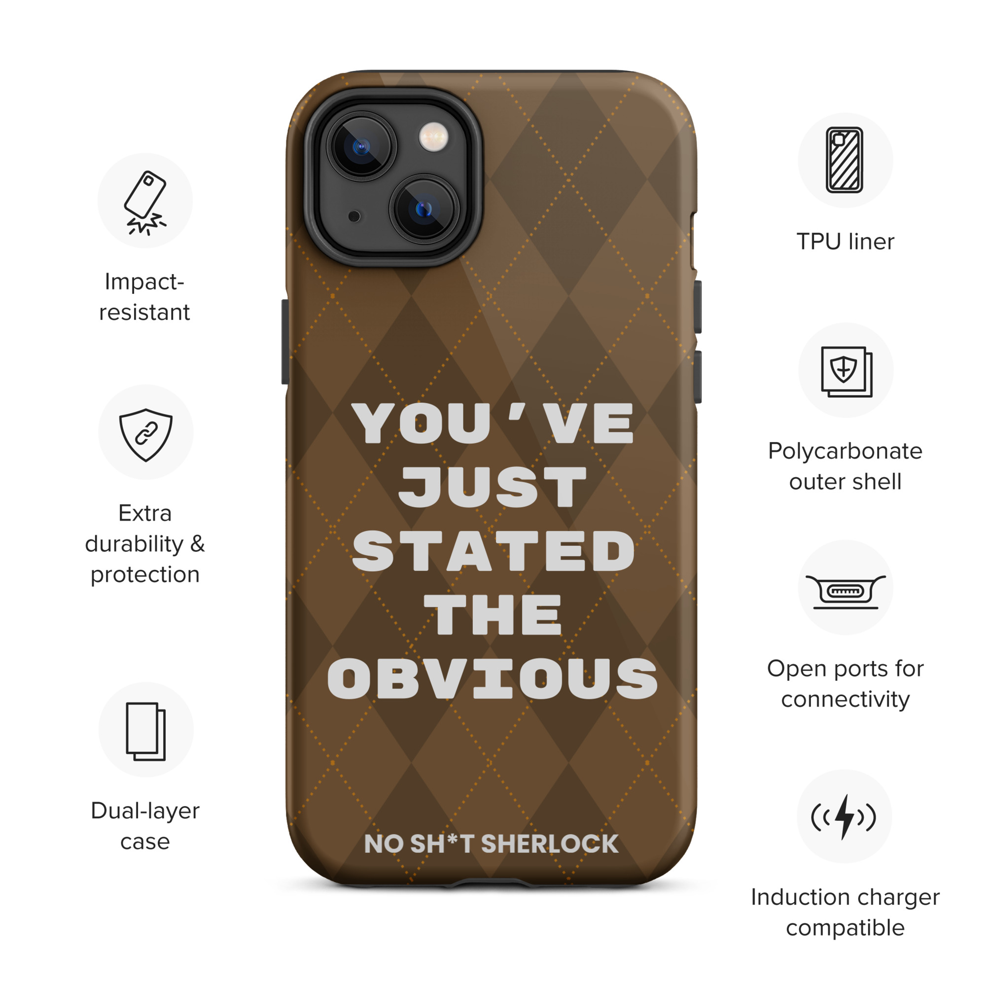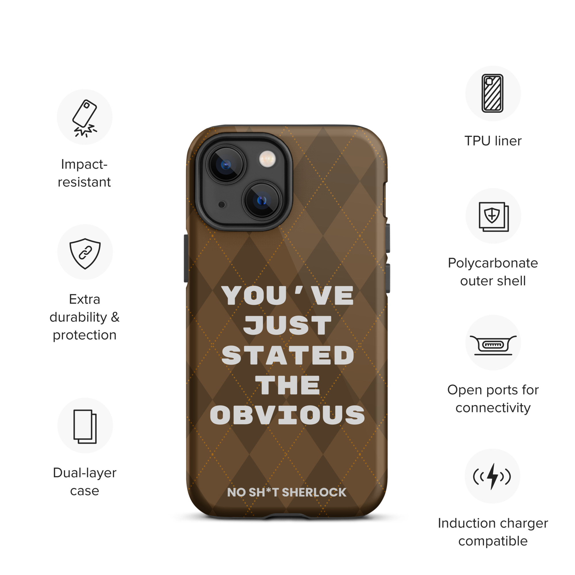 Protect your phone with style using a durable, dual-layered case. The outer shell is made of impact-resistant polycarbonate, while the inner lining sports TPU lining for maximum impact absorption. Keep your phone special and safe all year round!
