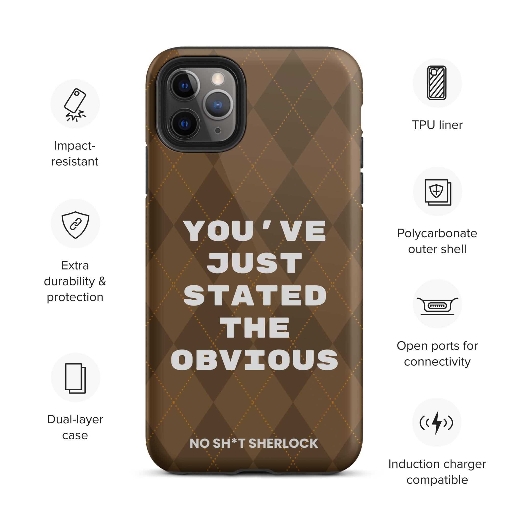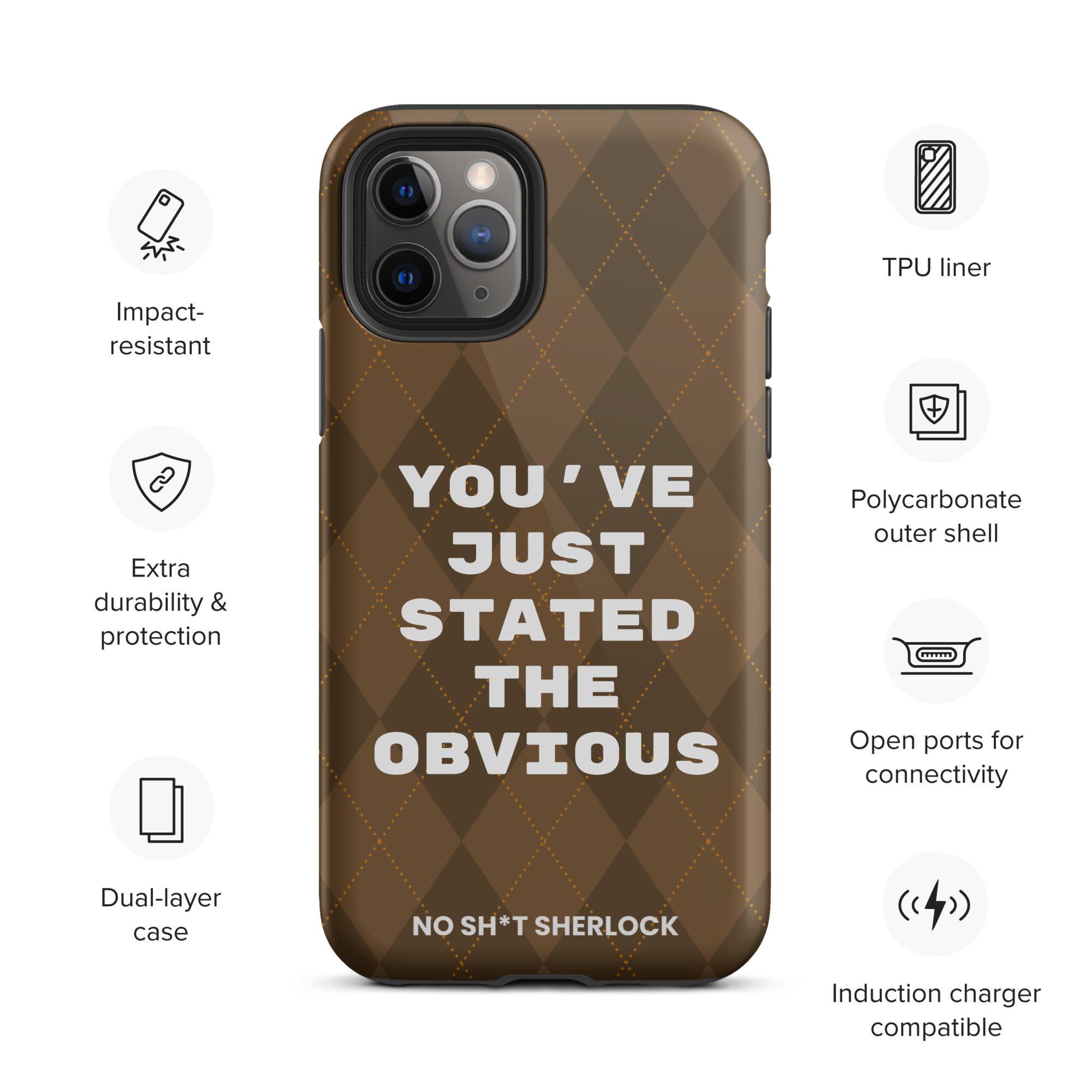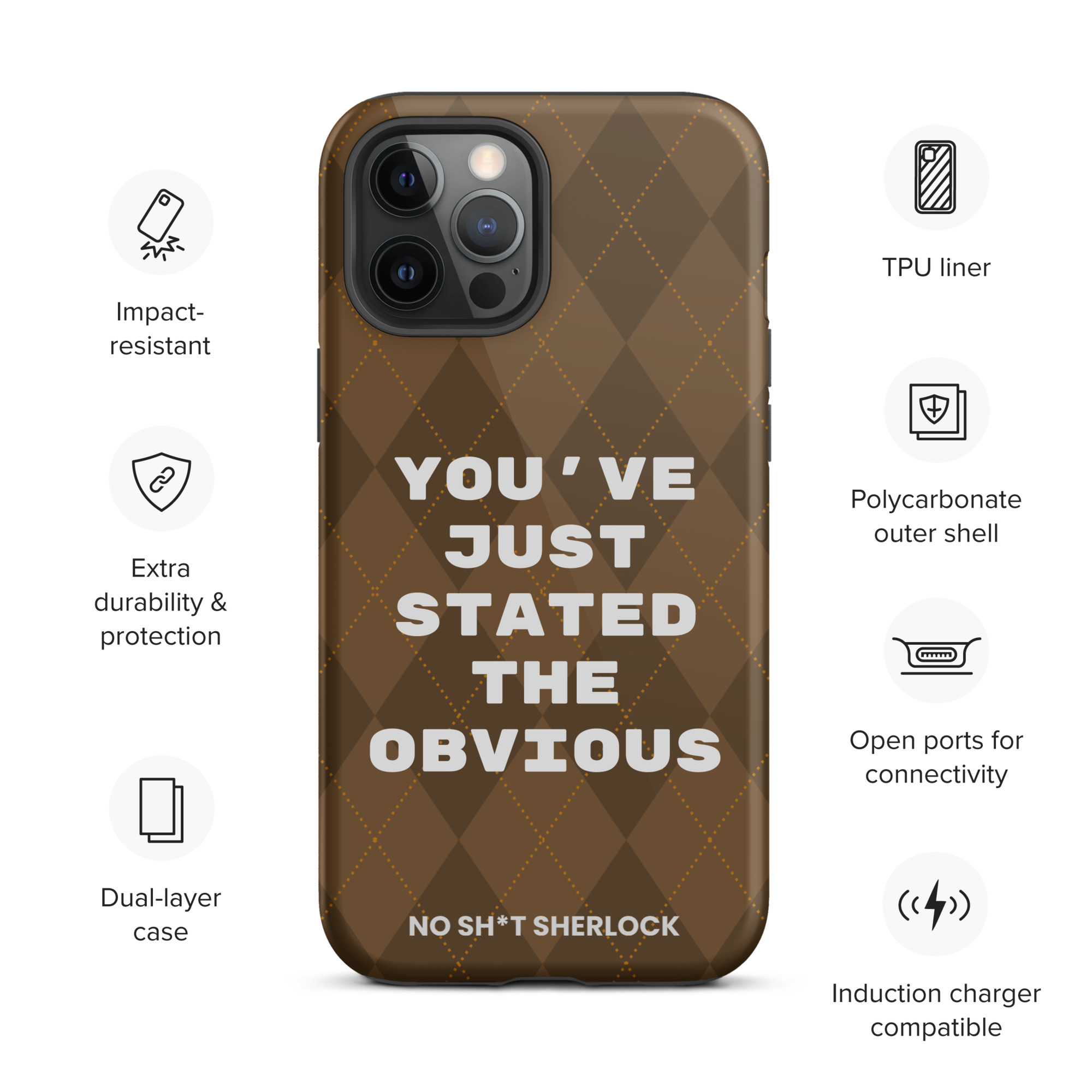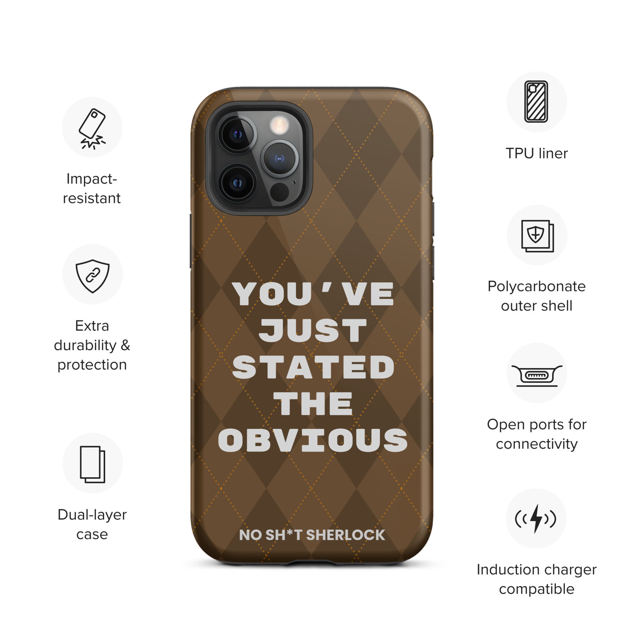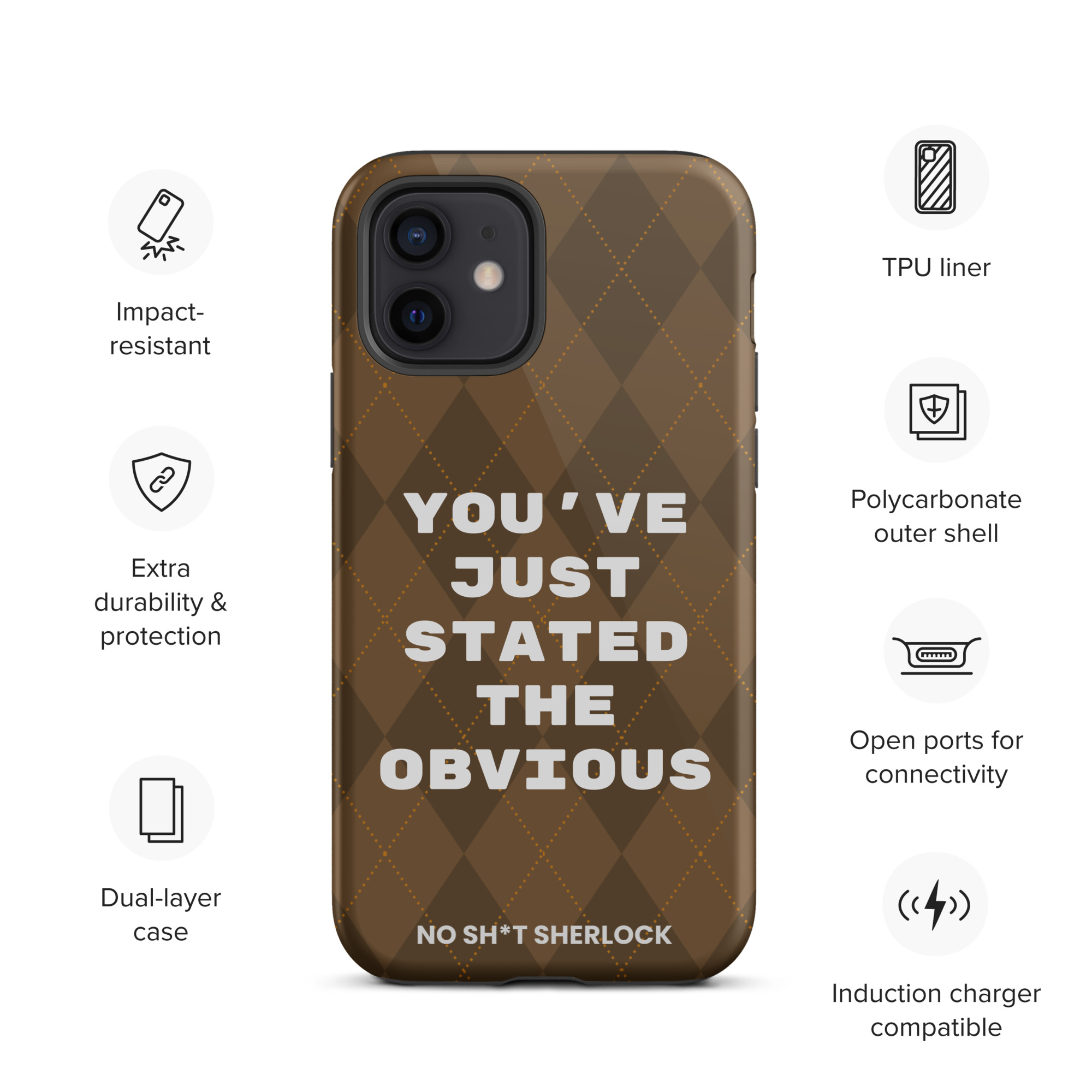 Protect your phone with style using a durable, dual-layered case. The outer shell is made of impact-resistant polycarbonate, while the inner lining sports TPU lining for maximum impact absorption. Keep your phone special and safe all year round!